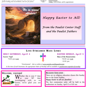 At the time of each livestream, the appropriate Order of Worship will be available at paulistcenter.org/order-of-worship.
